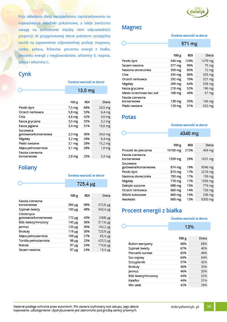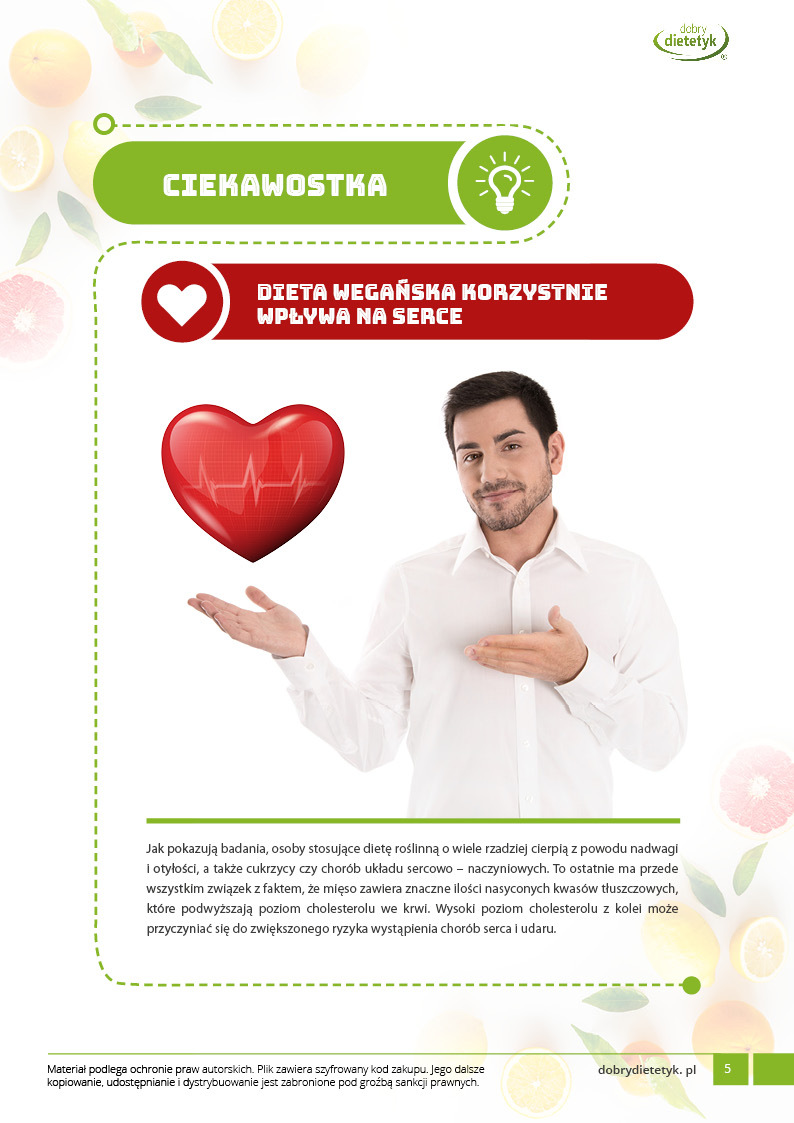 Dodatkowo do opracowanego planu dietetycznego otrzymasz atrakcyjnie przygotowane ciekawostki i wiadomości żywieniowe, które mam nadzieję pozwolą Ci zrozumieć wiele spraw związanych z nurtującym Cię problemem, a także przyczynią się do zwiększenia ogólnej wiedzy żywieniowej.