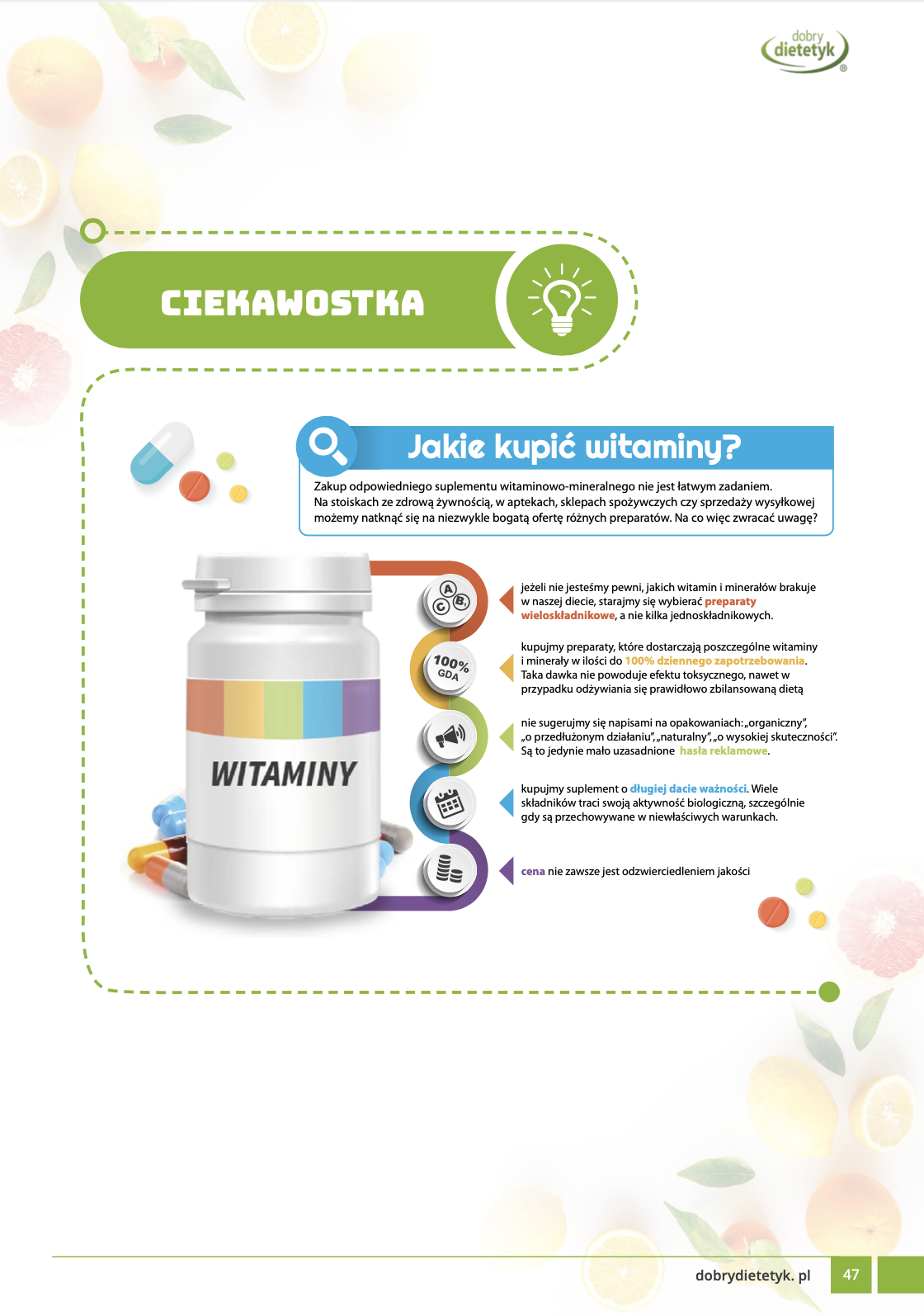 Dodatkowo do opracowanego planu dietetycznego otrzymasz atrakcyjnie przygotowane ciekawostki i wiadomości żywieniowe, które mam nadzieję pozwolą Ci zrozumieć wiele spraw związanych z nurtującym Cię problemem, a także przyczynią się do zwiększenia ogólnej wiedzy żywieniowej.