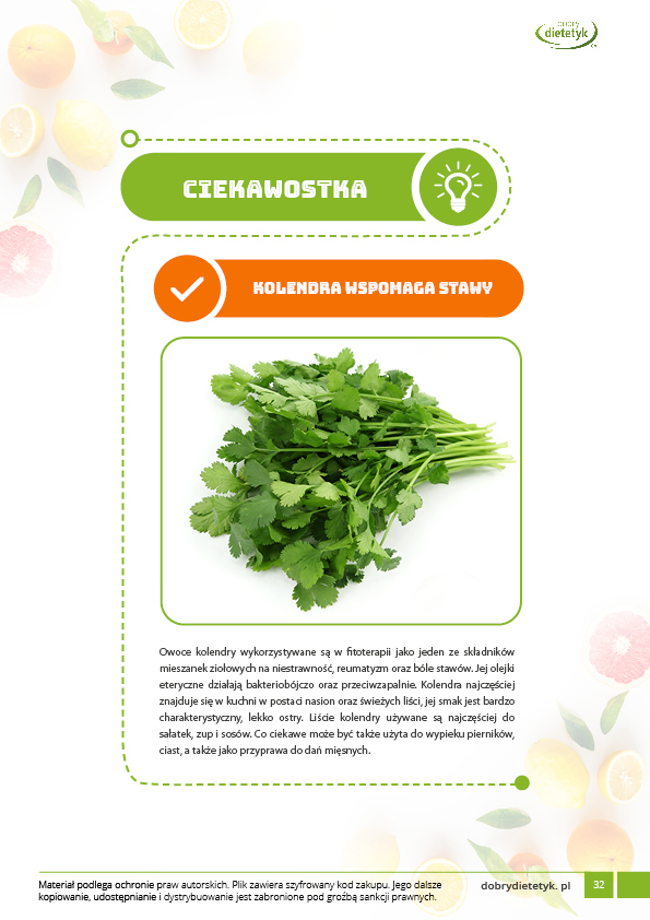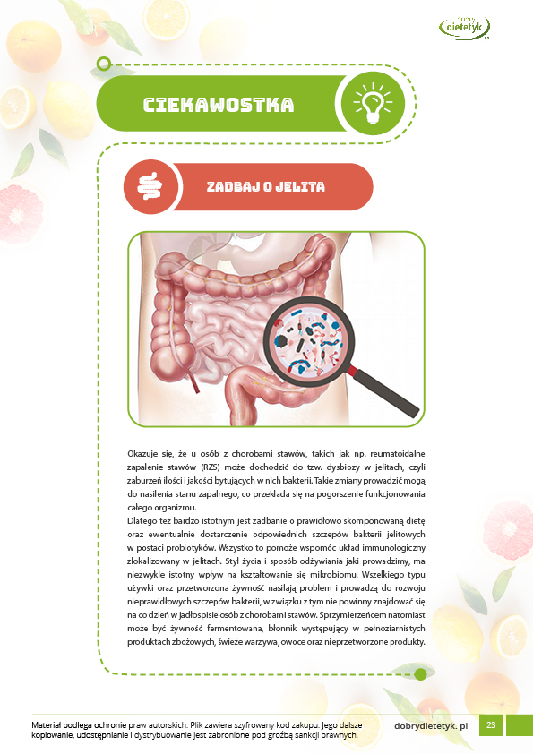 Dodatkowo do opracowanego planu dietetycznego otrzymasz atrakcyjnie przygotowane ciekawostki i wiadomości żywieniowe, które mam nadzieję pozwolą Ci zrozumieć wiele spraw związanych z nurtującym Cię problemem, a także przyczynią się do zwiększenia ogólnej wiedzy żywieniowej.